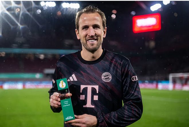 梅开二度,凯恩当选德国杯科隆vs拜仁全场最佳球员